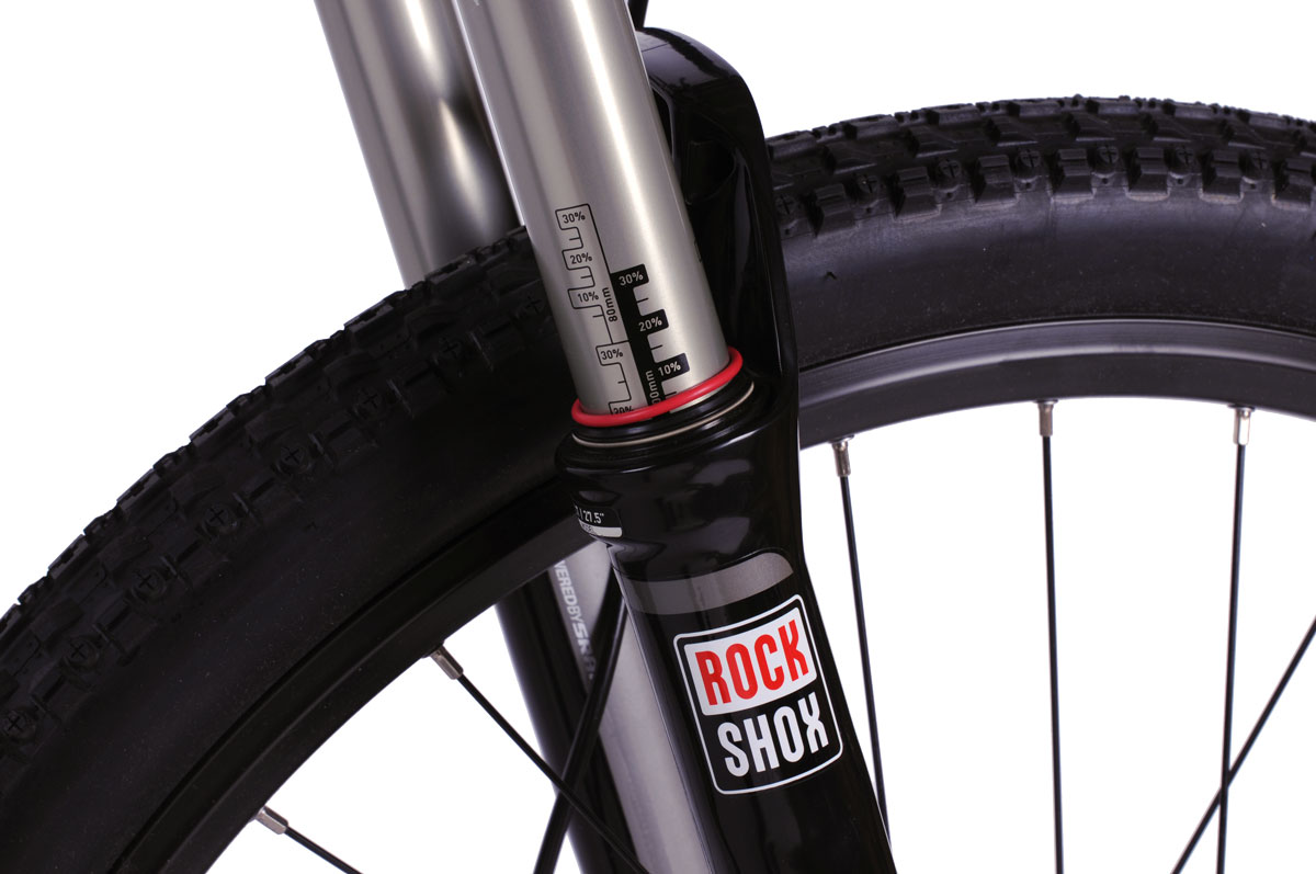 The Paratrooper Elite is equipped with a RockShox Recon suspension fork. It features 100mm of travel with a lockout and rebound adjustment.