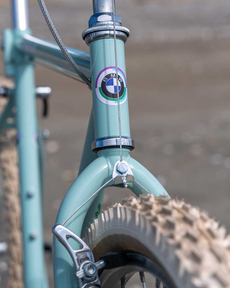 After the repairs were finished it was time for a fresh coat of paint and some new decals. Hakan decided to go for a new, more exciting color, selecting a beautiful and retro-appropriate shade of seafoam green powdercoat . In order to create replacement decals, detailed photos of the originals were digitally retraced, and the final color scheme came to life with bright new accents.