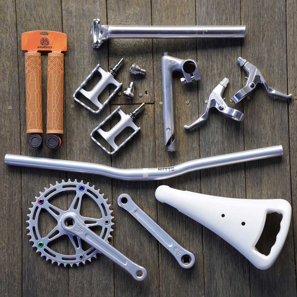 Hakan also added a number of custom components to bring his own style to the build, including a Kashimax Handler saddle, Nitto handlebars, vintage Sakae SX cranks, and matching silver wheels, seatpost, and stem. After a few final touches like colorful anodized bolts, the bike was ready to ride.