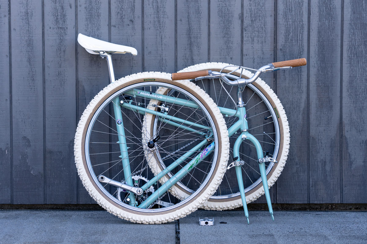 On a local auction site in the small town of Whitianga, New Zealand, vintage bike enthusiast Hakan Nedjat spotted his next project. What looked to be a normal retro style MTB turned out to be a 1990s Montague Bi-Frame ActiveLine, a full-size folding mountain bike produced by Montague for the automaker BMW. Available through BMW dealerships and high-end consumer catalogs, the BMW/Montague folding bike was a hit, and was even named the Official Mountain Bike of the 1996 Summer Olympic Games in Atlanta. The bikes were used by athletes for transportation to and from the Olympic venues and featured prominently in the closing ceremonies. Click here to see a video of the bikes in the closing ceremony!