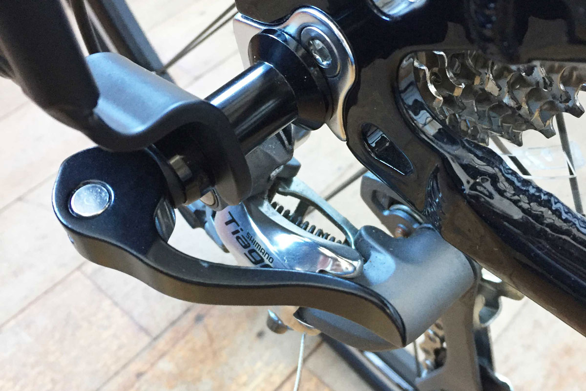 The Boston is the only bike model we make that is not compatible with our RackStand. Since it is a single speed, it has a 120mm rear hub width, which is significantly narrower than the typical 135mm hub spacing used on geared bikes. Additionally, the Boston uses a bolt on rear axle rather than quick release, and RackStand mounts with the use of a specially designed quick release skewer.
