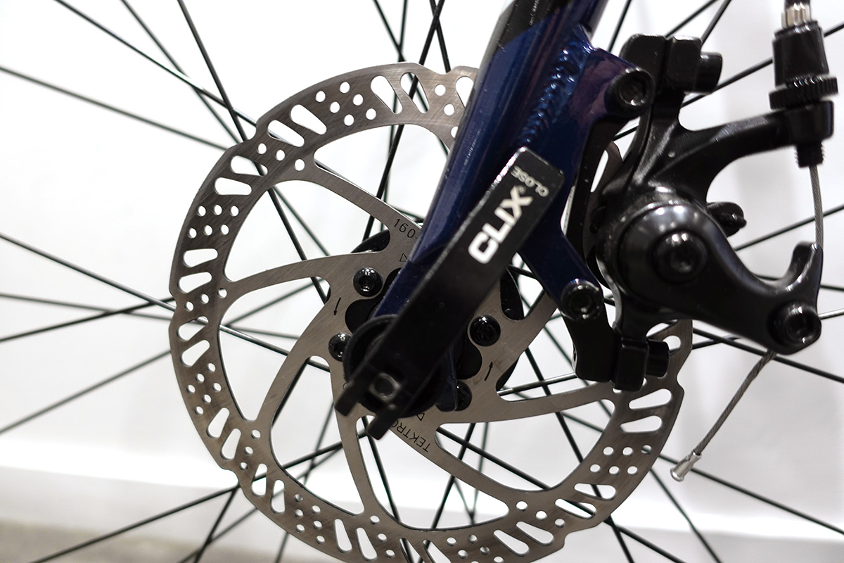 As you can imagine, it’s pretty important to have functioning brakes. Squeeze each brake lever and make sure they engage the brake before the lever makes it all back to the handlebar. Attempt to roll the bike forward with the brake engaged to ensure they’re functioning.