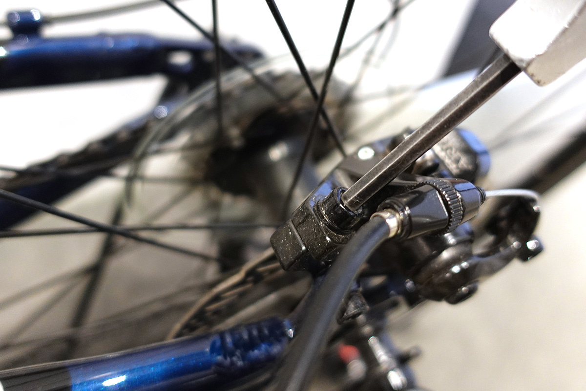 You could adjust both the stationary and the barrel adjuster as the pads wear. I typically find myself using the barrel adjuster when I notice it’s necessary, but for the best brake response you want the stationary pad as close to the rotor as possible. So it’s a good idea to check that as the pads wear and adjust accordingly.