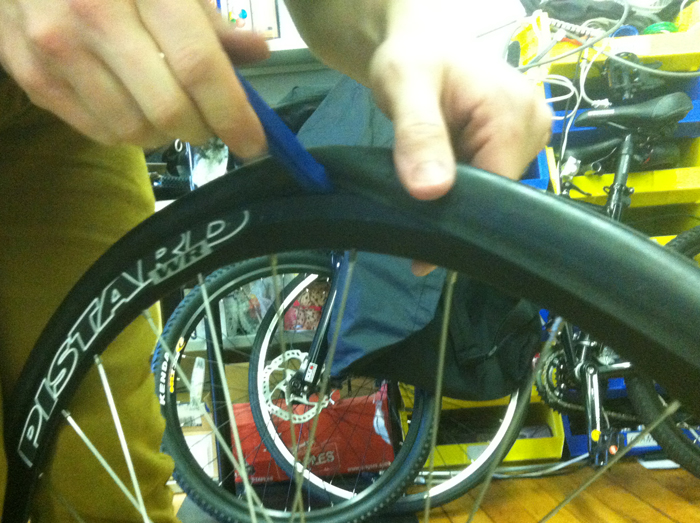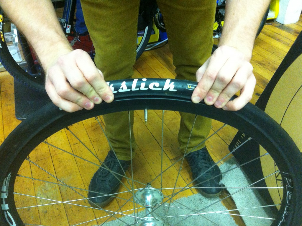 The ability to remove and install a bicycle tire is an extremely valuable skill to have. Fixing a flat is the most common bit of maintenance you’ll have to perform. It’s fairly simple so if you can do it yourself, you’ll save a lot of time and money. For installation, start by seating just one side of the tire on the rim. There will be a stiff bead along the inside of the tire that needs to get over the edge of the rim: