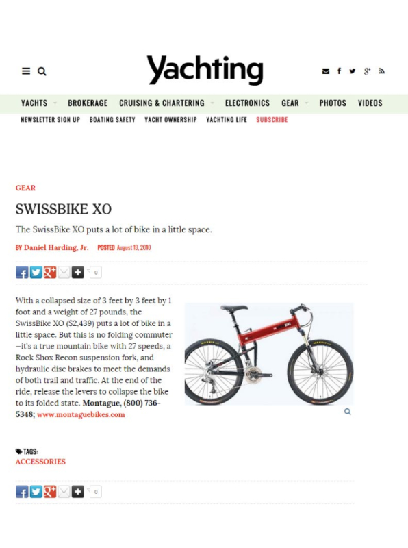 With a collapsed size of 3 feet by 3 feet by 1 foot and a weight of 27 pounds, the SwissBike XO ($2,439) puts a lot of bike in a little space. But this is no folding commuter—it’s a true mountain bike with 27 speeds, a Rock Shox Recon suspension fork, and hydraulic disc brakes to meet the demands of both trail and traffic. At the end of the ride, release the levers to collapse the bike to its folded state.