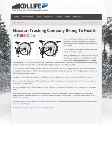 Prime Inc., Fitness Trucking Inc, and Montague Corporation, a bicycle company out of Cambridge, Massachusetts, have partnered to get drivers on the road to health.