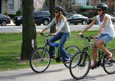 We like to call the SwissBike TX a dual-sport. While it still has the front-suspension and disc brakes found on some of our true mountain bikes, the TX comes equipped with a semi-slick tire that effectively bridges the gap between road and mountain. The smooth, but wide nature of the TX tires allow it to flow easily through the streets, while still taking off road detours.