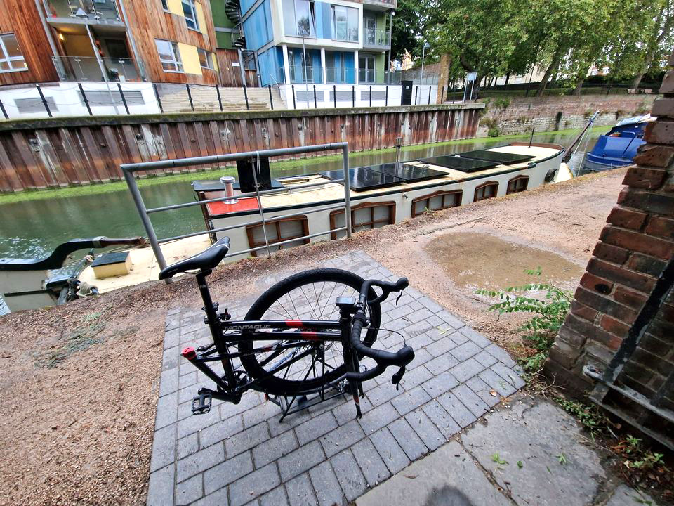 When facing tight living quarters, a foldable bike is ideal to make every inch of space count. Today’s featured Montague rider, Francis from the UK, encountered this challenge head-on, splitting time living on three different boats throughout the year. Between residing in London on a riveted iron Dutch barge from 1914, keeping a sailboat on the country’s southern coast, and also spending time on his fiancée’s boat, he is no stranger to the spatial limitations one faces with a live-aboard lifestyle.