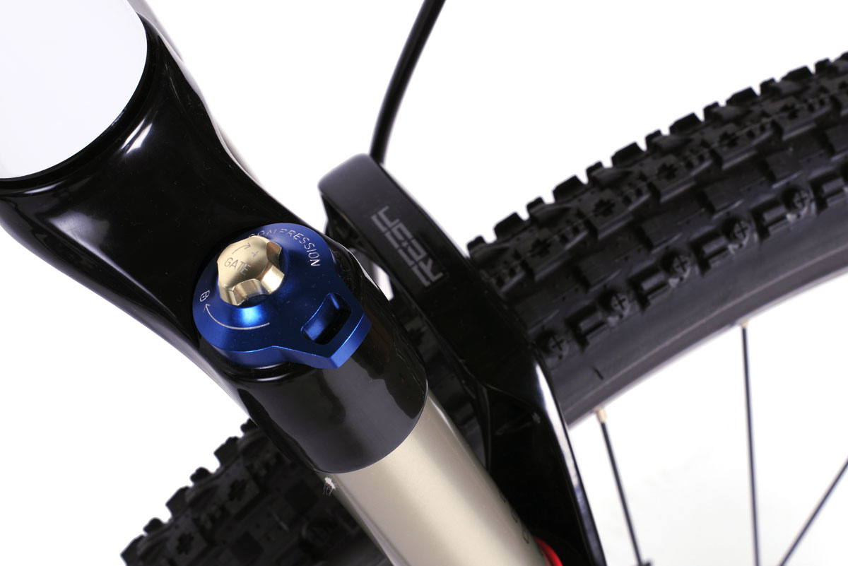 The Paratrooper Elite is equipped with a RockShox Recon suspension fork. It features 100mm of travel with a lockout and rebound adjustment.
