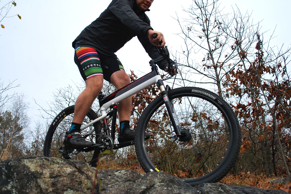 The quality of the frame itself looks great, just as good as other aluminum bikes I’ve inspected. Welds look good, the paint looks good. It arrived with no scratches or visible defects. The parts are sort of a known quantity as they’re all Shimano, Rockhsox, and Mavic. Good stuff you know you can count on because lots of other mountain bike use them. I’ve had a warranty claim with a Rockshox fork in the past and they were helpful so I can be confident on these too.
