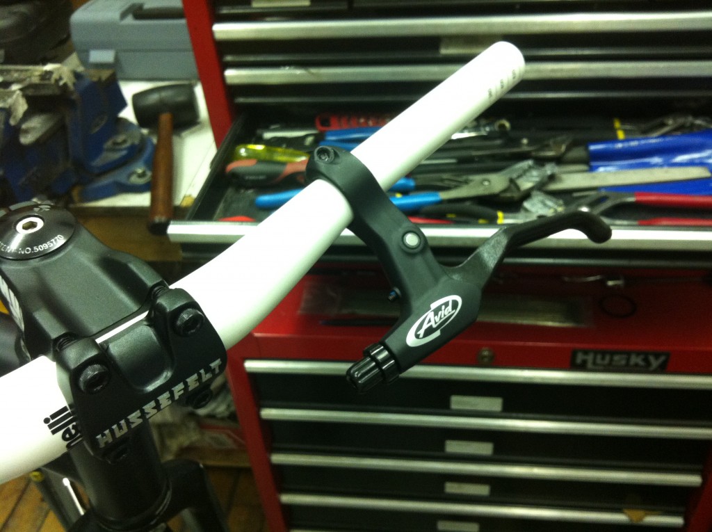 I’ve mounted an Avid mountain lever on my riser bars. While the stem clamp section can vary in diameter from handlebar to handlebar, the grip section is standard. You usually don’t have to worry about whether or not your lever will fit. However, I have mounted levers on older bars that were a bit small, and a piece of old innertube makes a great shim in that situation.