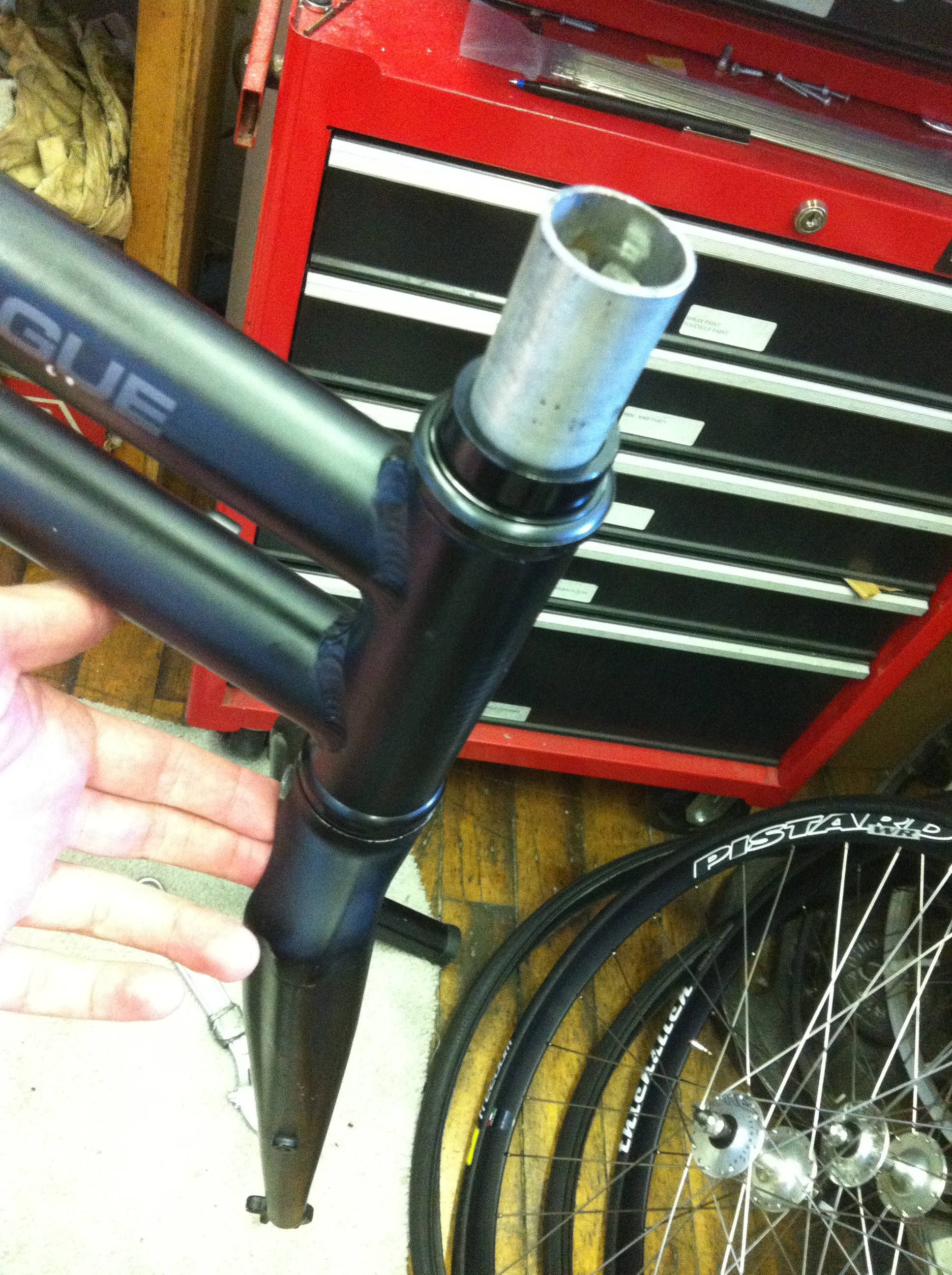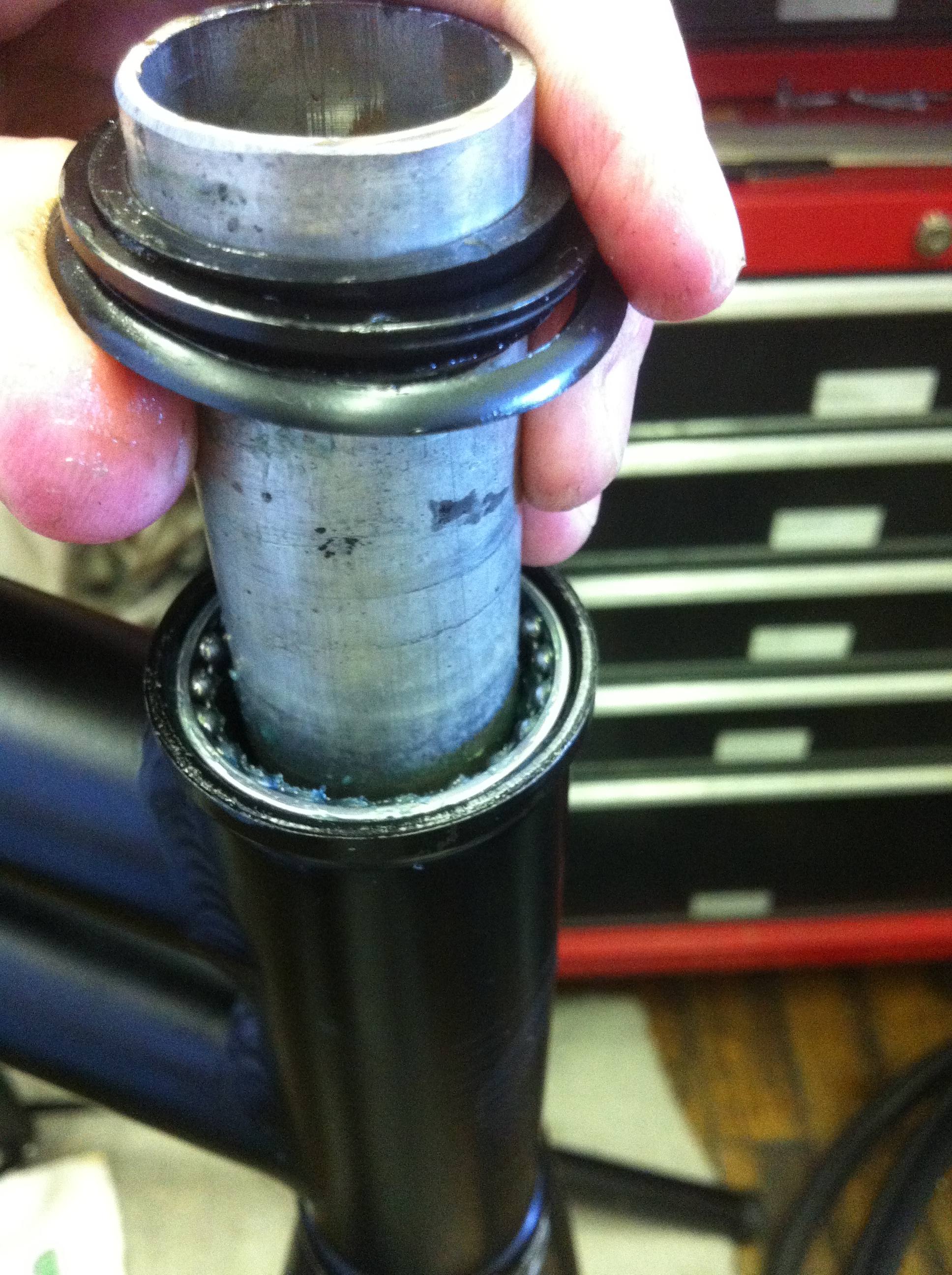 With freshly cleaned and greased bearings, this fork turned effortlessly, a great improvement from it’s former state. My headset now feels nice and buttery 🙂