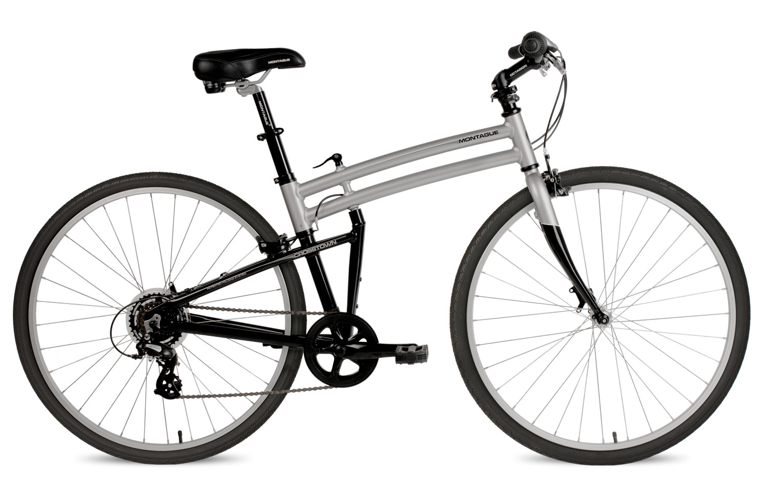 The 2015 Crosstown is a one of a kind pavement bike that is perfect for practical commuting. It’s an easy to use folding bike offering 7-speeds, 700c tires, and the CLIX™ Wheel Release System. It also features a new invention called the Octagon, a stem that is height-adjustable with just a simple click of a button. This allows the rider to have the handlebars at whatever height feels comfortable. This hybrid commuter comes in 17”, 19”, and 21” frame sizes and offers portability, and an elegant style for a ride that’s sure to attract attention.