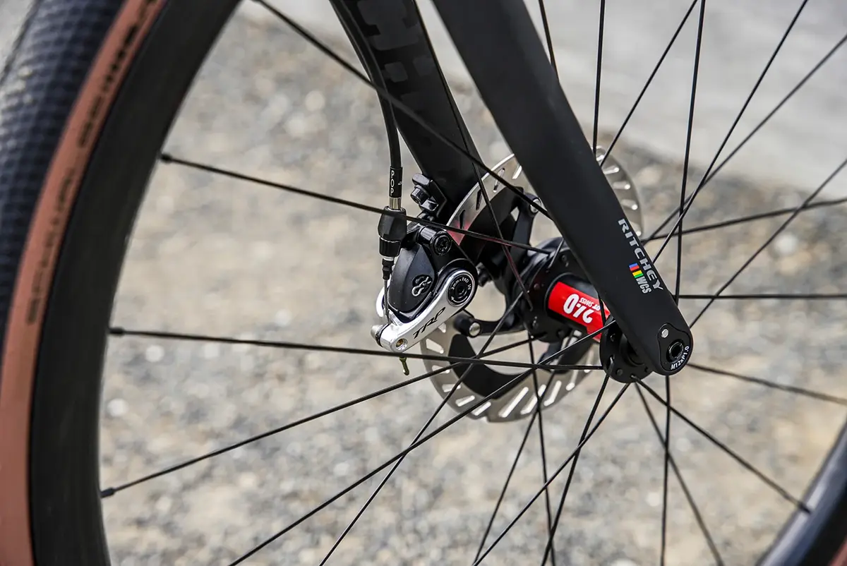 - Fork: Ritchey WCS Carbon Gravel Fork (1-1/8″ steerer, 47mm rake, 12mm thru-axle)