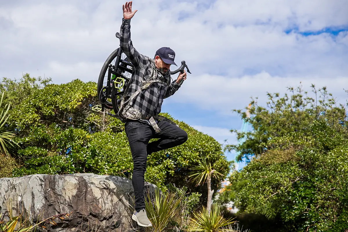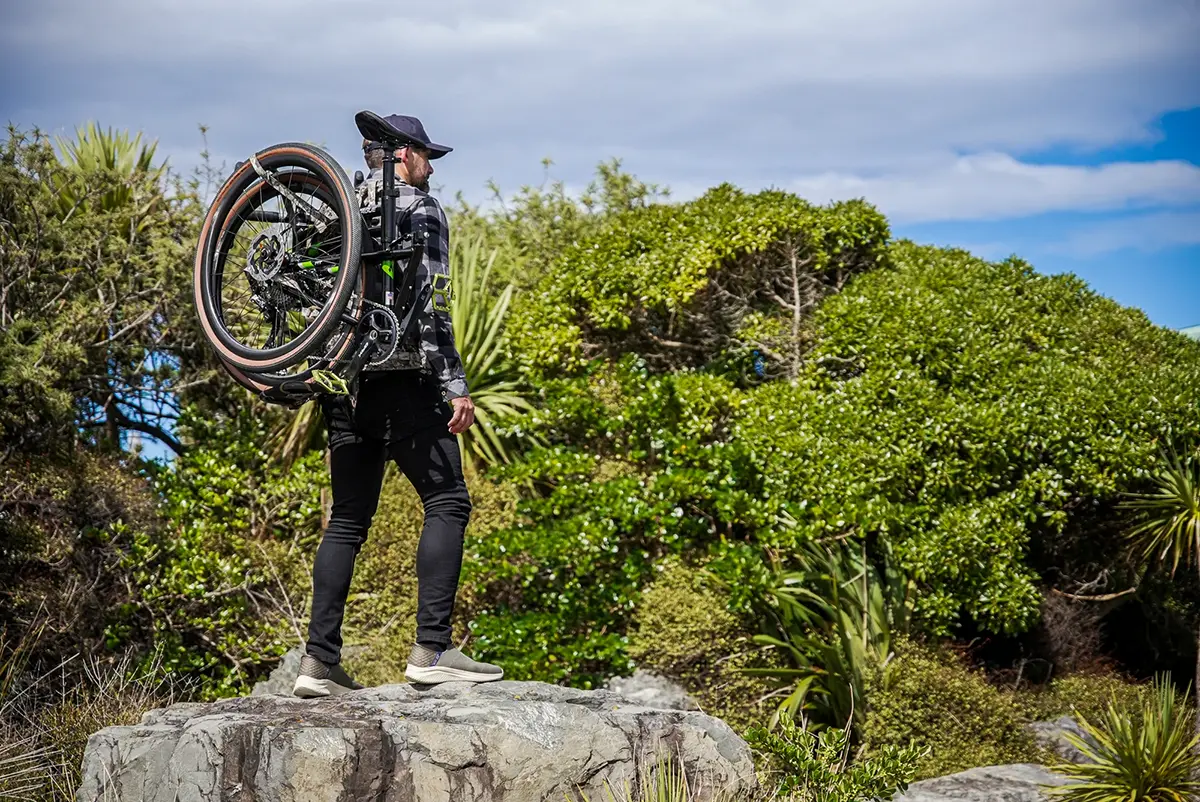 To accomplish this amazing feat, he needed a high performance bike for racing that was also compact and light enough to carry on his back while running, and strong and secure enough to attach to a raft while navigating the Waimakariri River.
