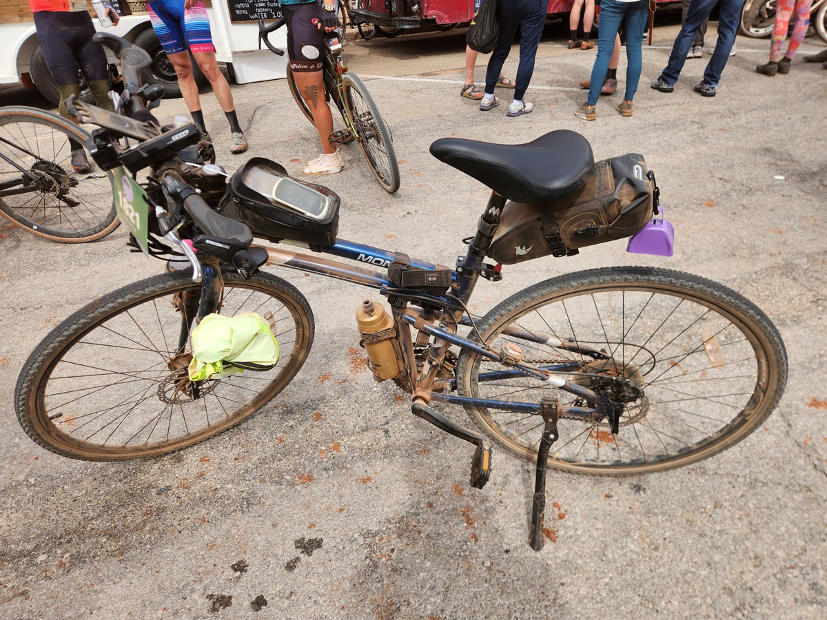 The Montague Navigator was one of the only folding bikes in the field, but that was no sacrifice in performance with Shawn tackling 58.95 miles of dusty bumpy roads and 4,250 feet of elevation gain in just over 6 hours. Shawn’s Navigator was outfitted with Ergo grips and bar ends, a new set of tires, and a saddle pack and frame bag to carry his gear, but the otherwise stock components provided the gear range, climbing ability, and all-terrain capability to conquer The Mid South.