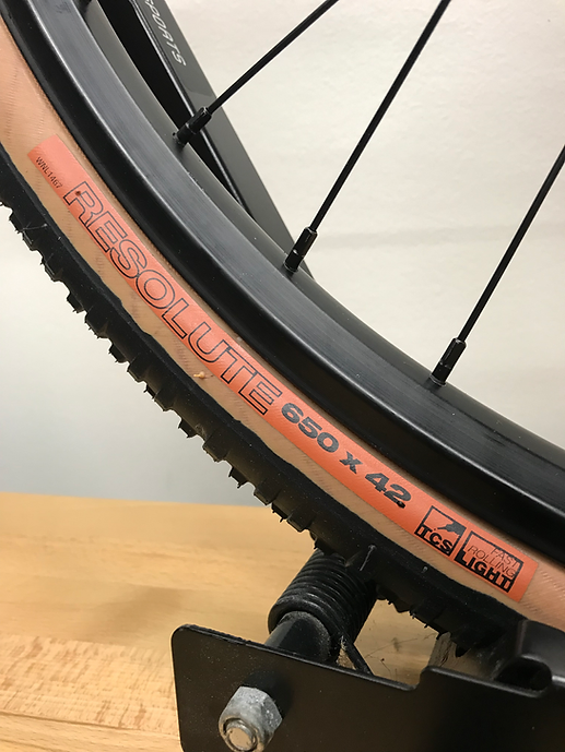 - Tires: WTB Resolute Gravel H, 650b x 42mm.
