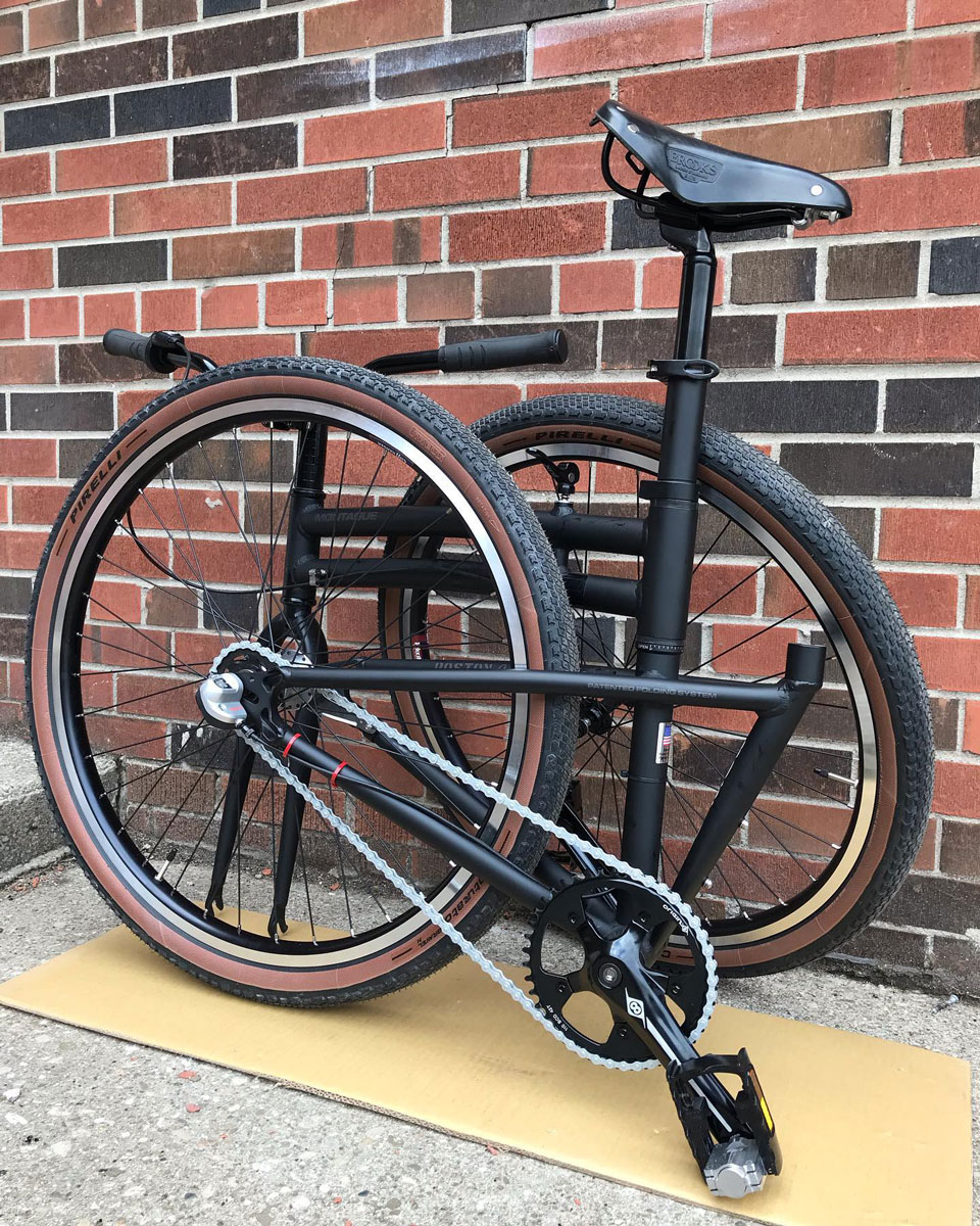 Beagle Bicycle Co., the premier source for Montague bikes in the Toronto area, consistently creates some of the most interesting custom Montague builds. Unlike other folding bikes with small wheels and many proprietary parts, Montague bikes use full-size wheels and all standard components. That allows endless customization of everything from the handlebars to the bottom bracket with off-the-shelf aftermarket parts.